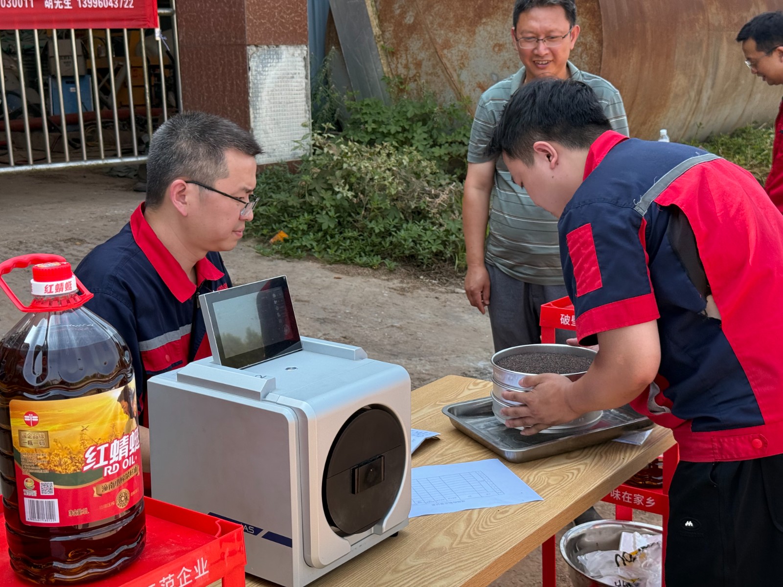 公司建立了“優(yōu)質(zhì)優(yōu)價(jià)”收購(gòu)體系,以“慶油3號(hào)”為例,對(duì)于符合收購(gòu)條件的菜籽,價(jià)格較普通菜籽上浮10%,且菜籽含油率每增加1%價(jià)格順加,實(shí)現(xiàn)綜合收購(gòu)價(jià)較市場(chǎng)價(jià)高出200元/噸。在收購(gòu)現(xiàn)場(chǎng),公司員工通過近紅外光譜儀現(xiàn)場(chǎng)快速檢測(cè)水分、含油率等指標(biāo),實(shí)現(xiàn)“田間直收+廠區(qū)掛牌”雙軌收購(gòu),5月20日至8月15日期間分階段收購(gòu),確保應(yīng)收盡收。