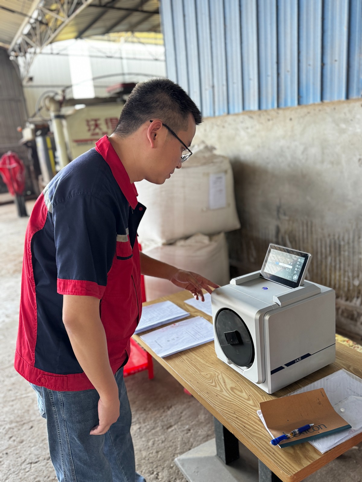 公司組建專項(xiàng)工作組統(tǒng)籌收購(gòu)全流程,在5個(gè)區(qū)縣各設(shè)1個(gè)田間收購(gòu)點(diǎn),配置移動(dòng)檢測(cè)設(shè)備提供15分鐘快速檢測(cè)服務(wù),同步完成倉儲(chǔ)設(shè)施、生產(chǎn)設(shè)備及人員培訓(xùn)準(zhǔn)備。通過“現(xiàn)場(chǎng)宣傳-電話聯(lián)系-快速檢測(cè)-復(fù)檢簽約-入庫結(jié)算”標(biāo)準(zhǔn)化流程,實(shí)現(xiàn)從種植到收購(gòu)的閉環(huán)管理,收購(gòu)期間引入第三方質(zhì)檢確保質(zhì)量可控,實(shí)現(xiàn)從“田間到車間”的全鏈條服務(wù)保障,讓農(nóng)戶賣得放心、交得明白。